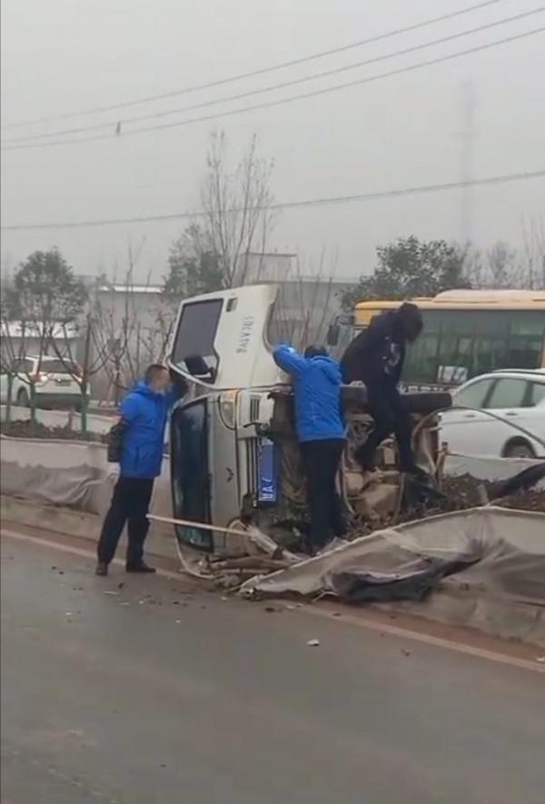 12月6日上午,在麦积区麦贾公路甘泉路段,兰州市的一辆微型面包车撞向路中央的绿化隔离带后发生侧翻,两名公交车驾驶员见状急忙上前施救,最终将两名被困人员成功救出