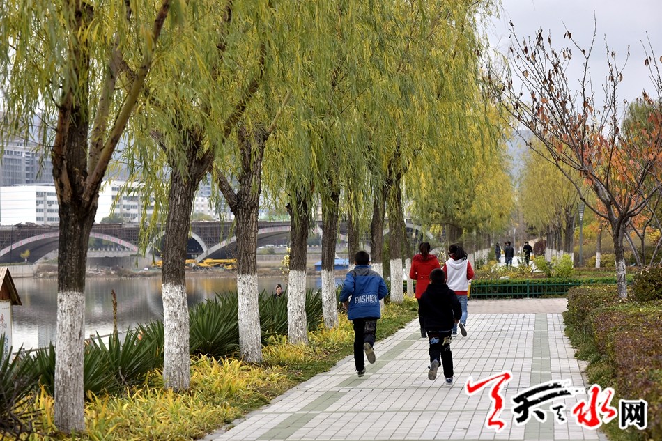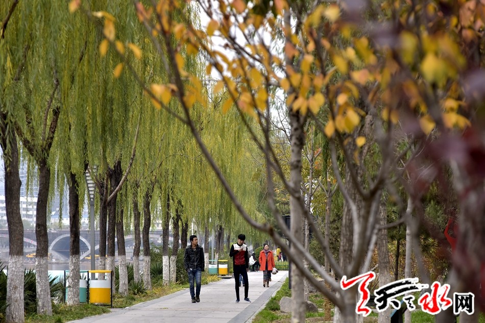 初冬的天水,虽说季节已进入冬天的模式,但古城今年秋的意韵却迟迟未退,天水的大街小巷,天水湖畔,伏羲城步行街等地极尽秋意的画韵诗情,吸引着市民的眼球,让不少向美之人拿出手机留影存念,一幅幅唯美画面构成了“陇上江南”的另一番景致。