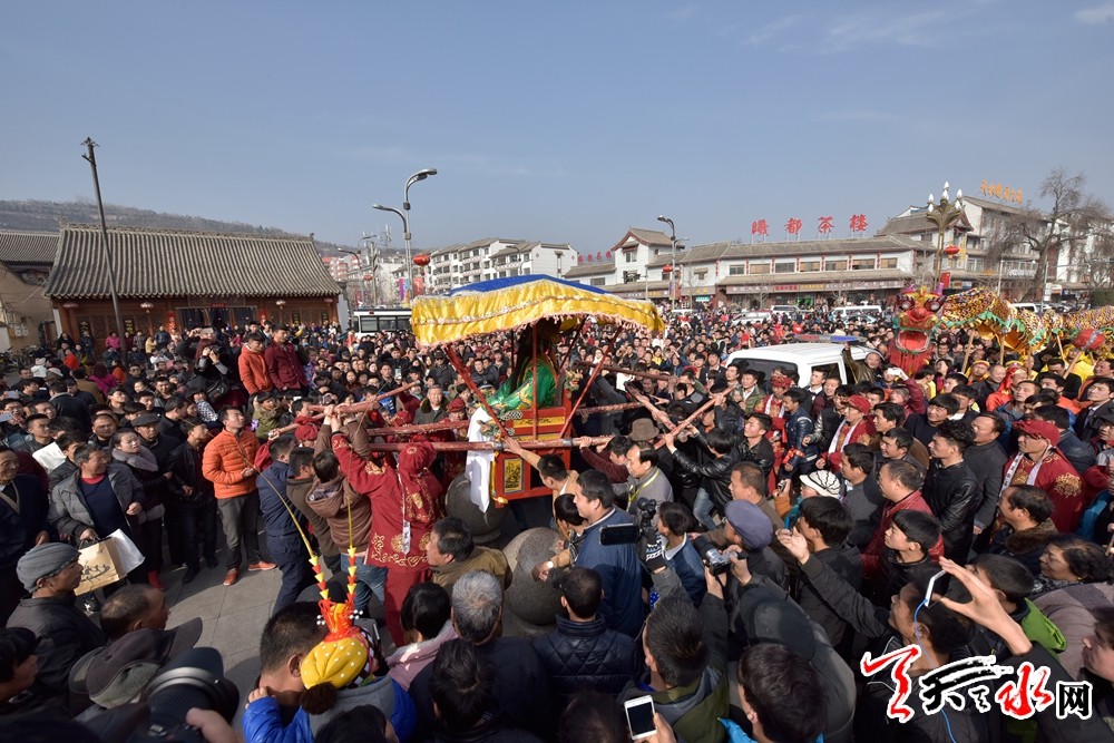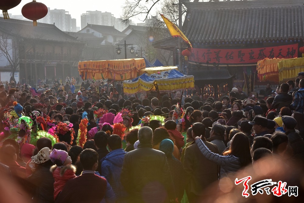 天天天水网 (记者何永德) 逛庙会、看大戏、观花灯、猜灯谜,2月22日,农历猴年元宵节,天水伏羲城人潮涌动,游人如织,热闹异常,伏羲广场上数以万记的市民和着明媚的春光全身心聆听着秦腔名角那一声过瘾的吼声,其景盛况空前,来自四乡八镇的善男信女扶老携幼在伏羲庙内祈福纳祥,共庆新春。