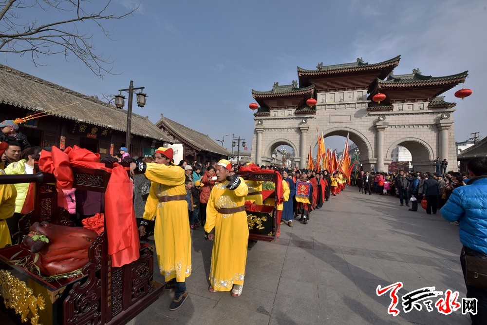 农历正月十六日是中华民族人文始祖太昊伏羲氏华诞,为追思先祖功绩,弘扬始祖精神,传承伏羲文化,彰显中华民族尊祖、敬祖、祭祖的传统美德,为期四天的“福佑中华——丙申(2016)年天水伏羲庙春祭中华民族人文始祖太昊伏羲氏华诞典礼”正有序进行。