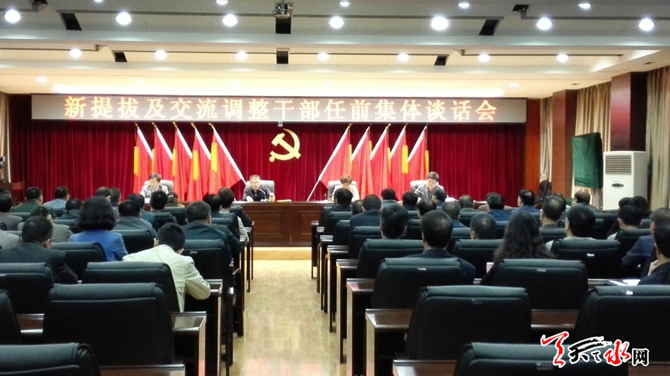 天天天水网讯【记者 王晓馨】4月22日,天水市委召开新任职干部任前集体谈话会,市委书记王锐出席会议并讲话。王锐要求,新任职干部要正确对待岗位调整变化,自觉服从组织安排,强化责任担当,勇于探索创新,以良好的作风形象投入到新的工作中去,为推动全市经济社会改革发展作出新的贡献。市委常委、市纪委书记李美华出席会议,市委常委、组织部部长王光庆主持会议。