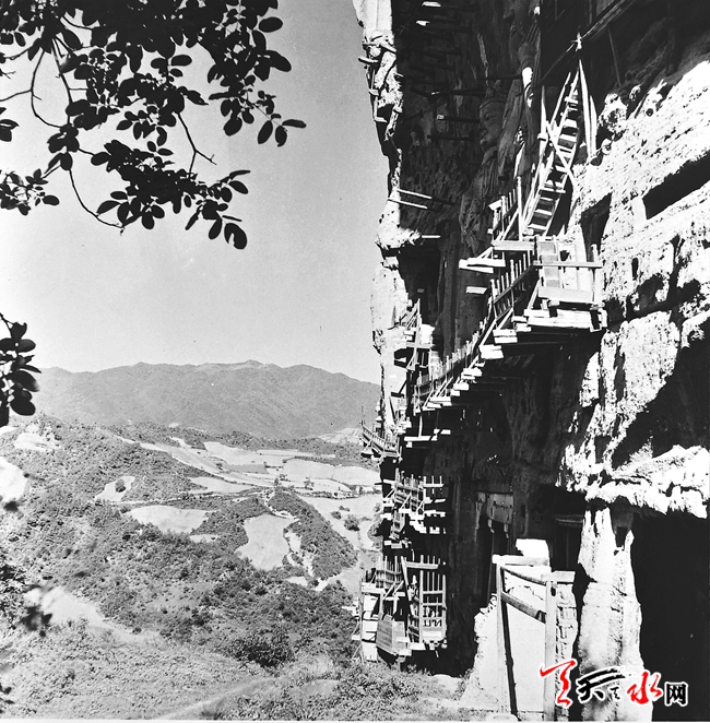 不到一百华里的路分两天走,第二天午前便到了麦积山下的瑞应寺。瑞应寺就是文管所之所在。要上麦积山,就得进寺院大门,穿过院落,从后院登木梯、上栈道。常年无人,所长关门闭户,便可固守宝山。