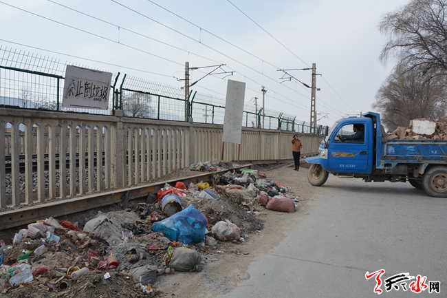 前不久,记者前往甘谷县新兴镇采访,经过雒家村时看到,沿路堆满了各类生活垃圾,可就在垃圾堆上方的护栏上,赫然写着“禁止倒垃圾”的标语。