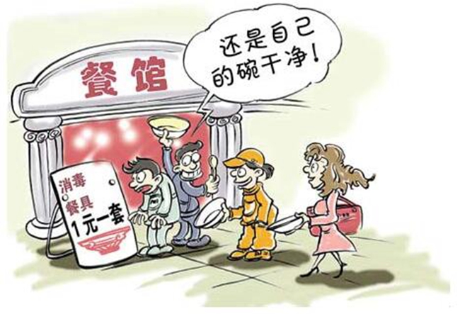 一套消费餐具只有1元、2元或是3元钱,消费者一般不会为这些“小钱”上心,更不会为此而与餐厅发生争执。正是消费者这种“不为几元钱折腰”的态度助长了餐饮企业“理所当然”地不遵守法规条文。