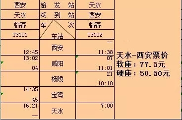 (“天水号”列车时刻表)