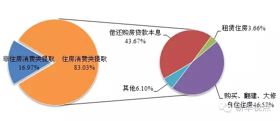 全年住房消费类提取9122.90亿元,占当年缴存额和提取额的62.70%和83.03%,分别比上年提高了4.18个百分点和7.66个百分点。其中,购买、翻建、大修自住住房占46.57%,偿还购房贷款本息占43.67%,租赁住房占3.66%,其他(如物业费提取等)占6.10%。
