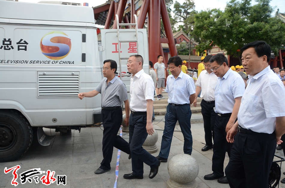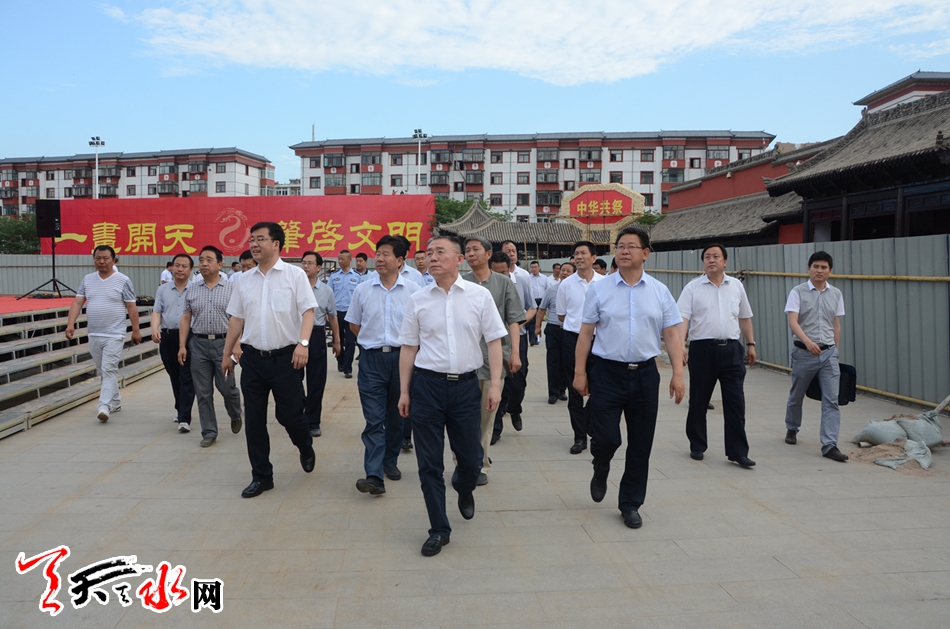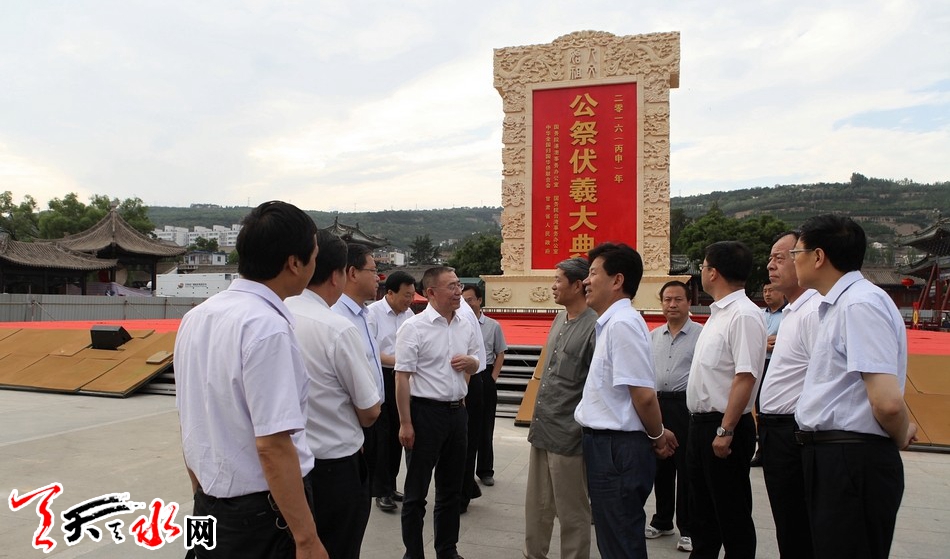 天天天水网讯【记者郝勤学 冯丽娟】6月19日下午,天水市委书记王锐,天水市委常委、副市长张明泰,天水市委常委、秦州区委书记雷鸣,天水市委常委、宣传部长王正茂,天水市人大常委会副主任张仲康,天水市副市长张建杰带领有关部门负责人来到伏羲广场、伏羲庙检查2016(丙申)年公祭伏羲大典筹备情况。王锐强调,要在前段时间筹备工作的基础上,进一步查漏补缺,突出关键环节和重点部位,切实把各项工作抓细抓实,确保今年公祭伏羲大典圆满成功举办。