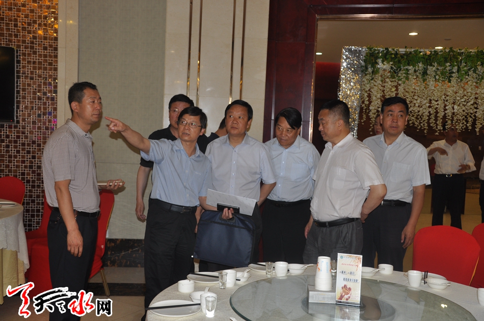 在承担来宾接待任务的麦积区地质宾馆和怡欣阁酒店,杨维俊一行分别对客房、会见厅、餐厅的筹备服务工作进行了察看指导。