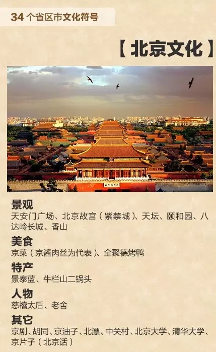 人民日报官方微信评出了中国34个省市区的文化符号,一起广闻博识看看吧!