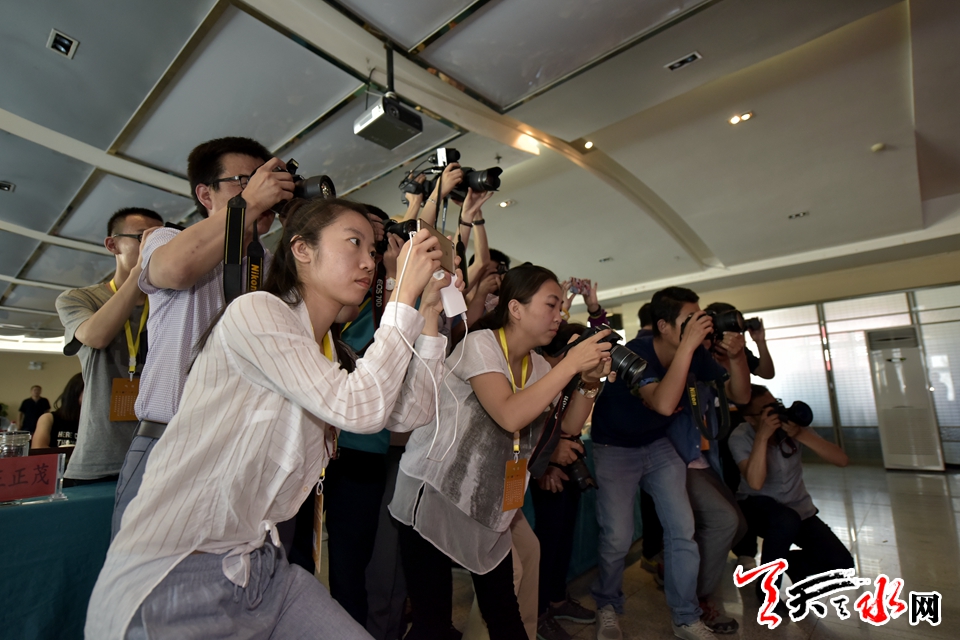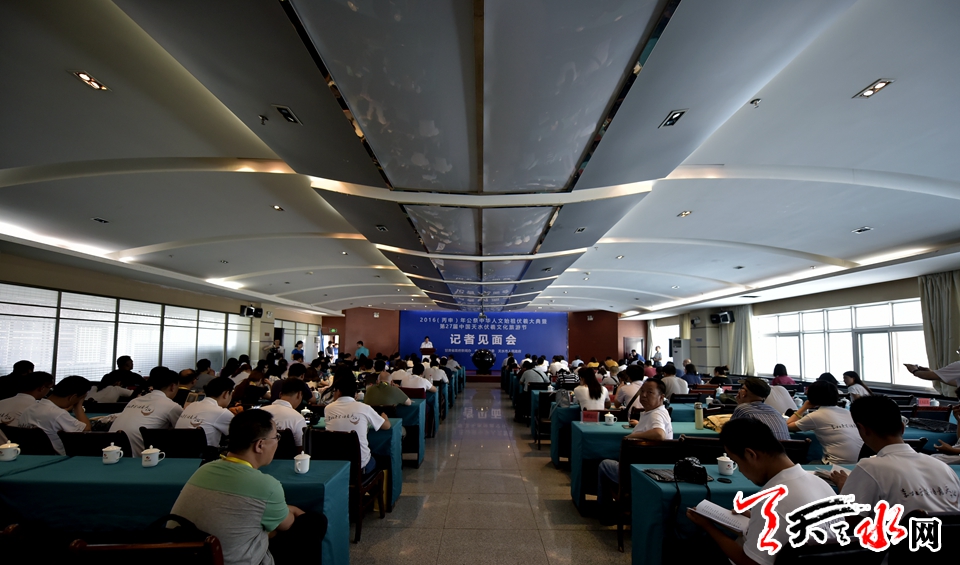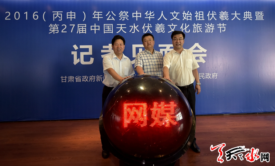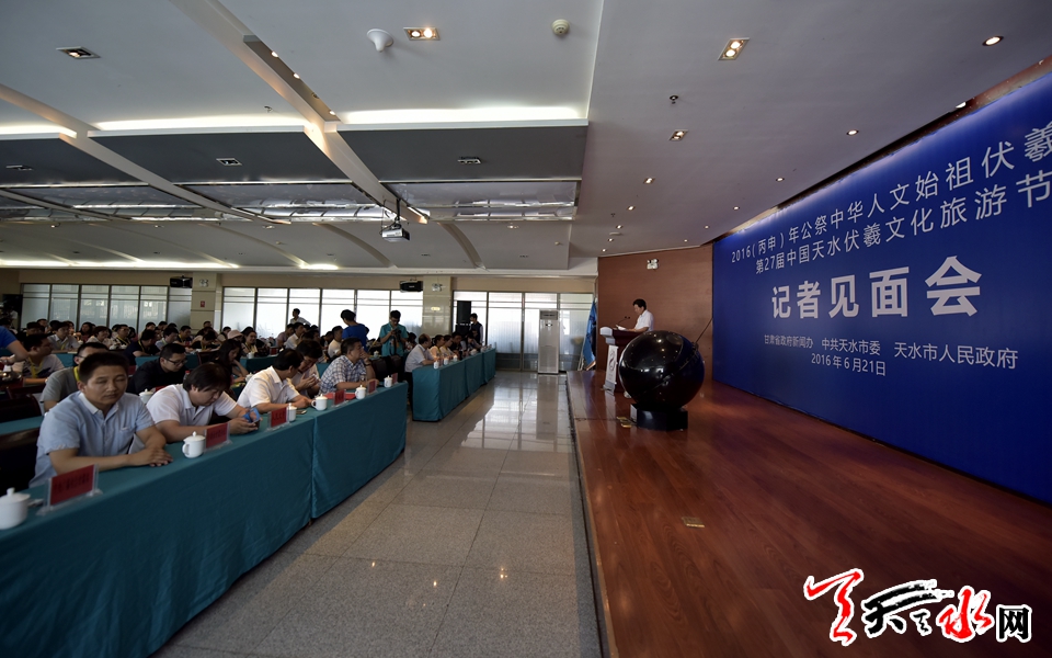 天天天水网 (记者何永德) 6月21日下午,省政府新闻办公室和天水市委、市政府在天辰大酒店举行了2016(丙申)年公祭中华人文始祖伏羲大典暨第27届中国天水伏羲文化旅游节记者见面会。首届中国天水·李杜诗歌节甘川诗人寻访杜甫草堂互动采风团授旗仪式以及“全国重点网媒天水行”大型采访活动同期启动。