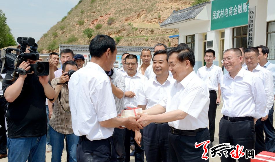 甘肃省委常委、省委秘书长李建华,甘肃省委副秘书长赵国强,甘肃省委农工办主任周兴福,甘肃省扶贫办主任任燕顺,天水市委书记王锐,天水市委常委、市委秘书长蒋晓强参加调研。