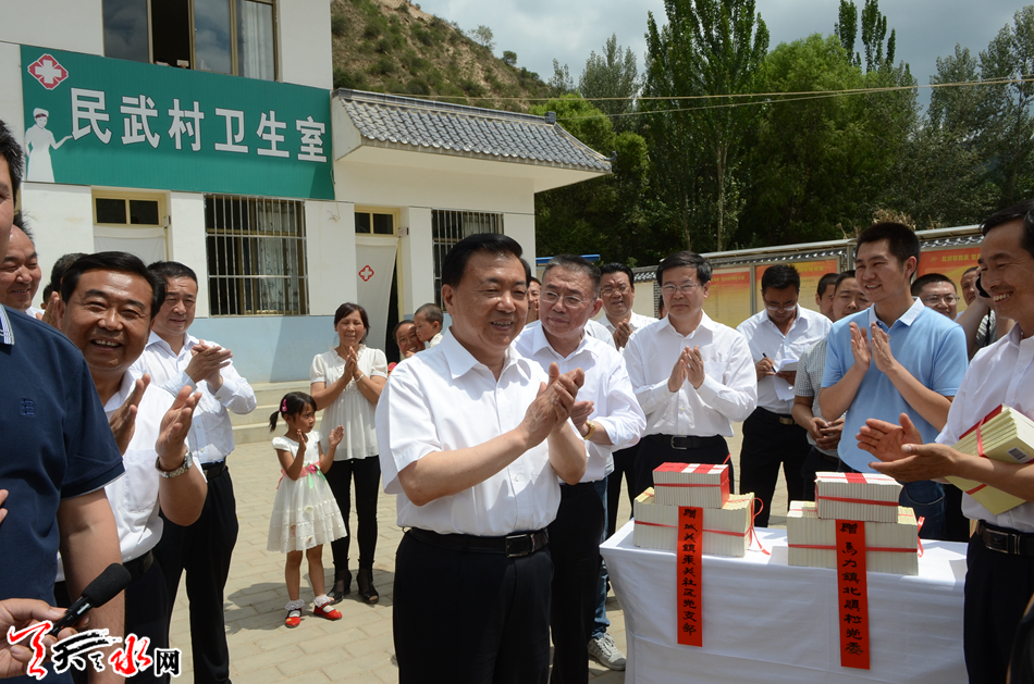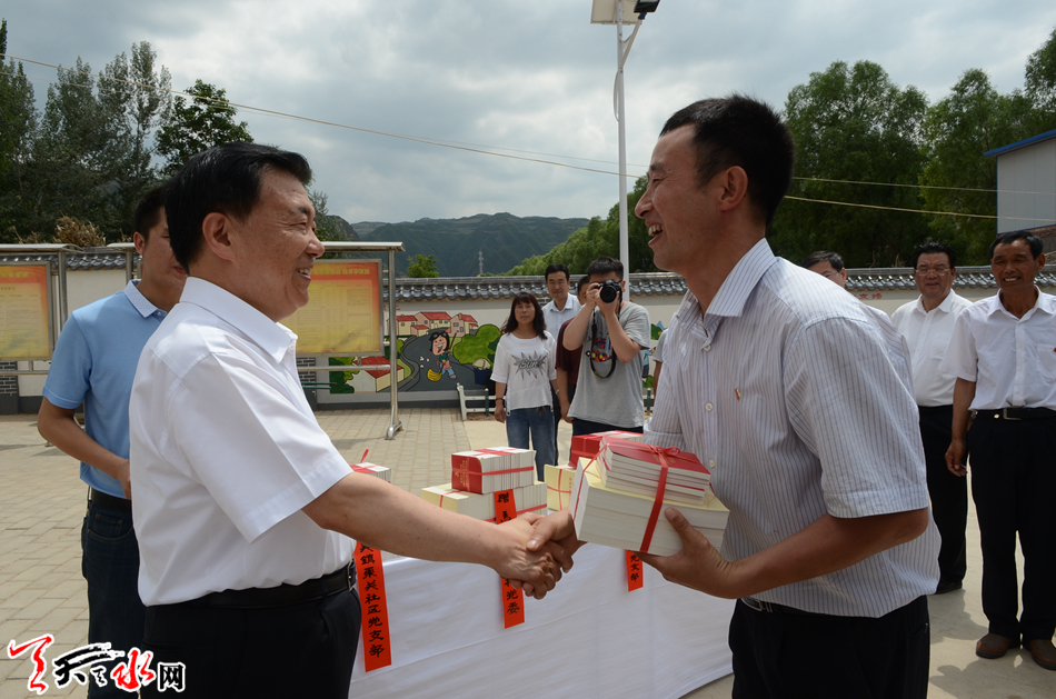 随后,王三运来到民武村村委会,亲切看望了双联联系户,并向武山县东关社区、马力镇北顺村和民武村、山丹乡车岸村党支部、天水祁连山水泥有限公司党委赠送《中国共产党党章》《中国共产党廉洁自律准则》《中国共产党纪律处分条例》《习近平总书记系列重要讲话读本》,勉励基层党组织和广大党员干部认真开展“两学一做”学习教育,统筹推进学习教育和基层各项工作,全力抓好精准扶贫和社会稳定等各项工作,带领群众不断拓展致富门路和增收渠道,早日致富奔小康。
