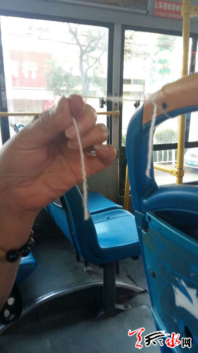 记者注意到,不到半个月的时间,我市公交车上配备的扇子,有一半只剩下绳子,有的扇子遭到不同程度的损坏。在一辆3路公交车上,记者只找到了一两个残缺的扇子,其余的座位上都只有半截空空的绳子。