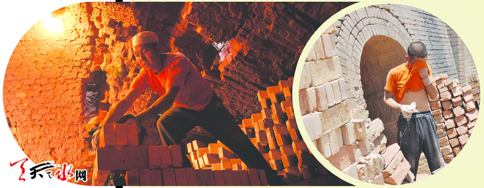 ▲窑内窑外,都是酷热难耐,但为了孩子还得再加把劲儿!