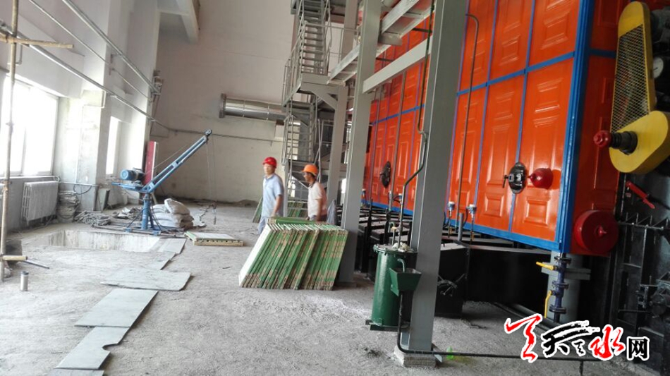 作为天水市第一个德促贷款项目、省市开发区重大项目,天水东区集中供热工程位于开发区社棠工业园东端,至目前,土建方面已基本全部完成,正在进行锅炉房地平铺砖,设备采购已经全部完成,设备安装已经全部完成,今年供暖前完成联动调试。图为7月19日,工人正在运设备。
