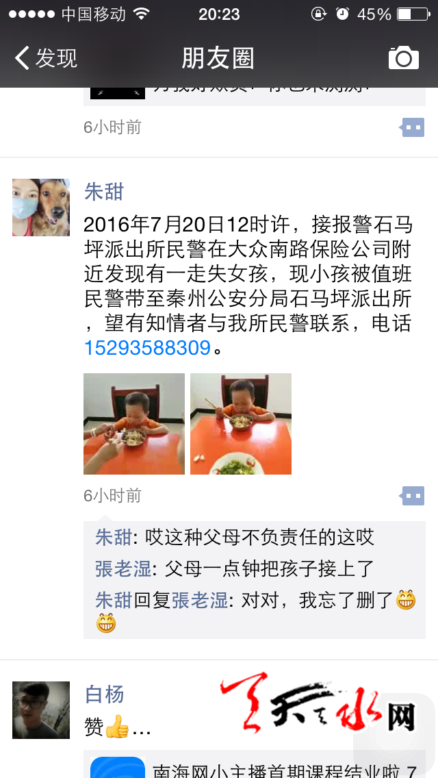 最后张帆警官也对微信朋友圈里转发这条消息的好心市民表示了感谢,希望市民们能将这份关爱他人的 正能量永远传播下去。