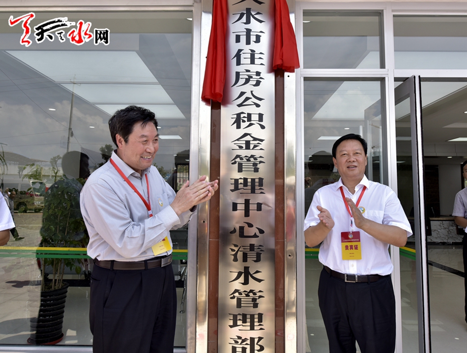 天天天水风讯【记者小军 永德 杨旭 明辉 闫鑫】7月21日,天水市住房公积金管理中心清水管理部正式挂牌运营。省政协副主席张津梁,天水市委副书记、市长杨维俊为清水管理部揭牌;市委副书记、市政协主席宋尚有,市委常委、纪委书记李美华,市委常委、市委秘书长蒋晓强,市人大常委会副主任王子生,市政府秘书长逯克宗,清水县委书记刘天波,县委副书记、县长马越垠等省、市、县领导和市住房公积金管理中心班子成员出席揭牌仪式,市住房公积金管理中心党组书记、主任张长平主持揭牌仪式。