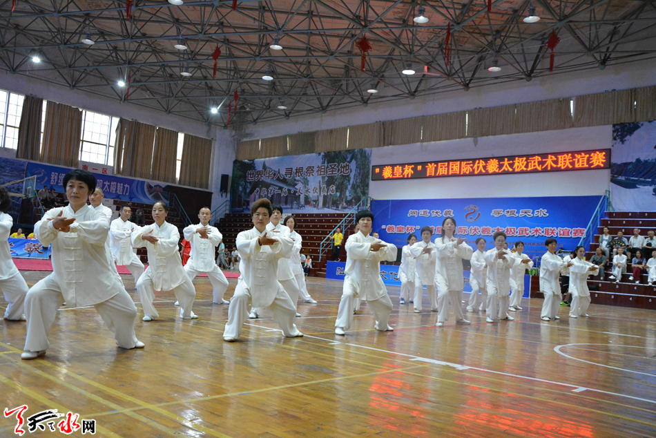 7月22日,由天水市体育局、天水市体育总会和天水市伏羲庙管理局主办,伏羲学院、天水伏羲太极道研究院承办的“问道伏羲”——“羲皇杯”首届国际伏羲太极武术联谊赛在市体育馆开赛。