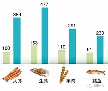 实验结果发现,羊肉、大虾、生蚝、鸡翅等经过烧烤后,食物中嘌呤含量骤增一倍多以上,食用过量会加重身体负担,高尿酸血症患者则可能诱发痛风。