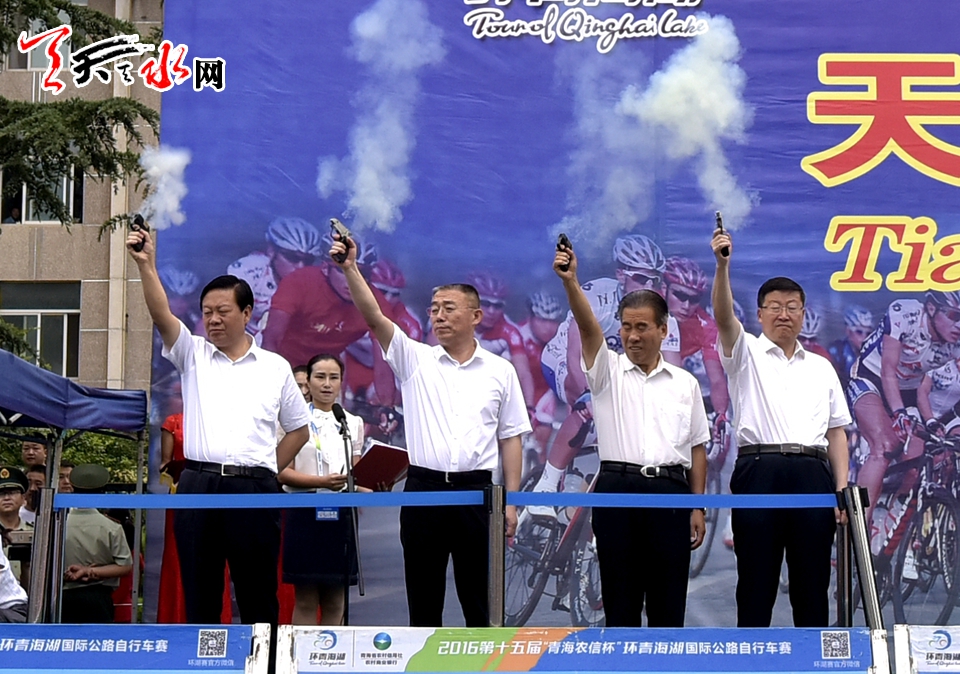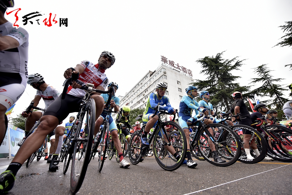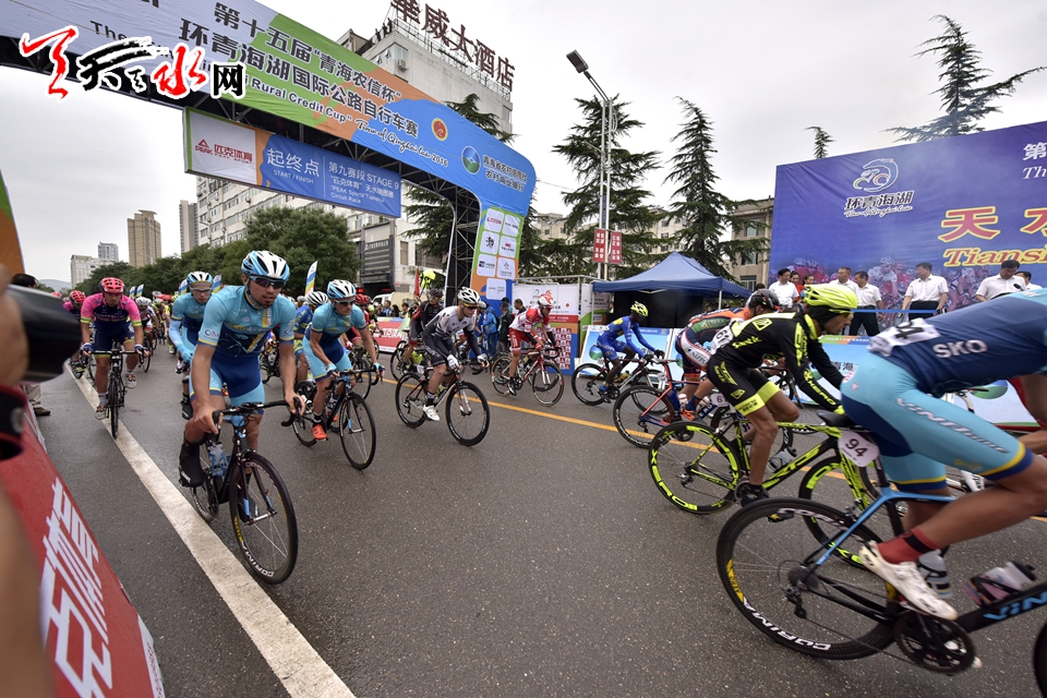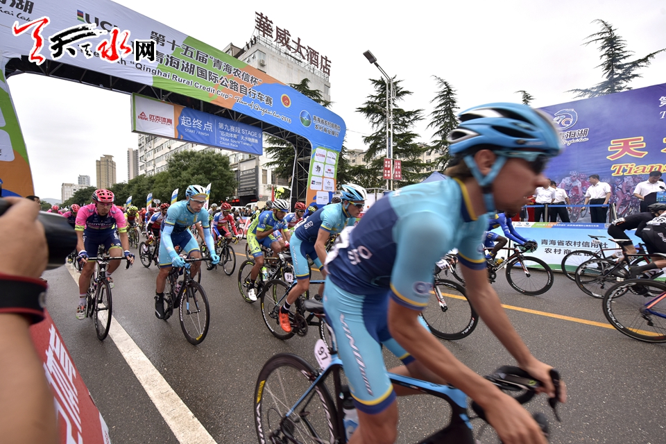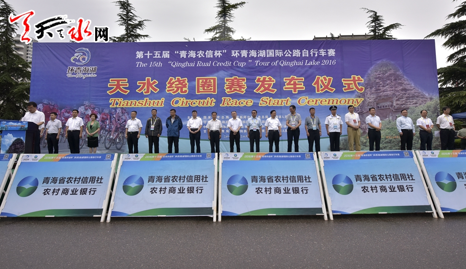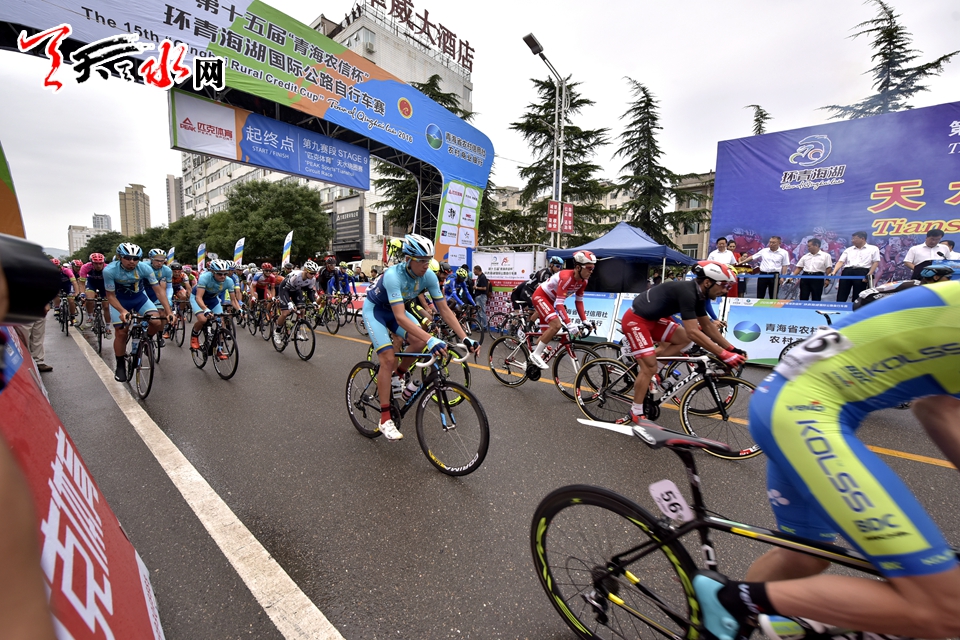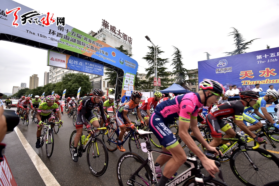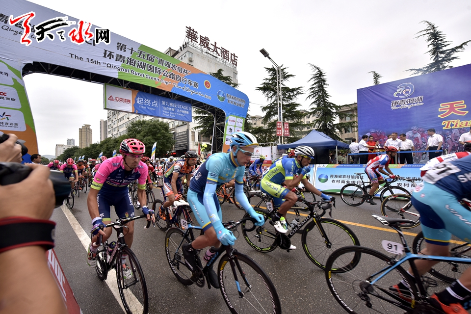 天天天水网讯【记者冯丽娟 实习生吴丽娜】7月26日,2016第十五届“青海农信杯”环青海湖国际公路自行车赛第九赛段天水绕圈赛在细雨中鸣枪开赛。来自世界五大洲23支参赛队伍的体育健儿展开激烈角逐。