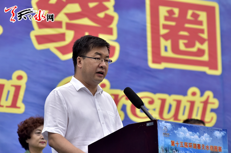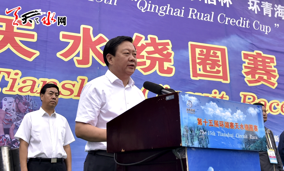 杨维俊在致辞中代表市委、市政府和天水人民向各位来宾、运动员、裁判员及新闻界的朋友表示热烈的欢迎。他说,环湖赛是具有国际影响、世界水平和中国特色的公路自行车运动精品赛事,已连续两次在天水成功举行,今年我们将继续全力做好各项服务保障工作,确保天水赛段比赛精彩、顺利、圆满。热切期待各位参赛选手在美丽的“羲皇故里”放飞激情、超越自我、创造佳绩。祝愿第十五届环湖赛天水赛段的比赛圆满成功!祝参赛选手取得优异成绩!