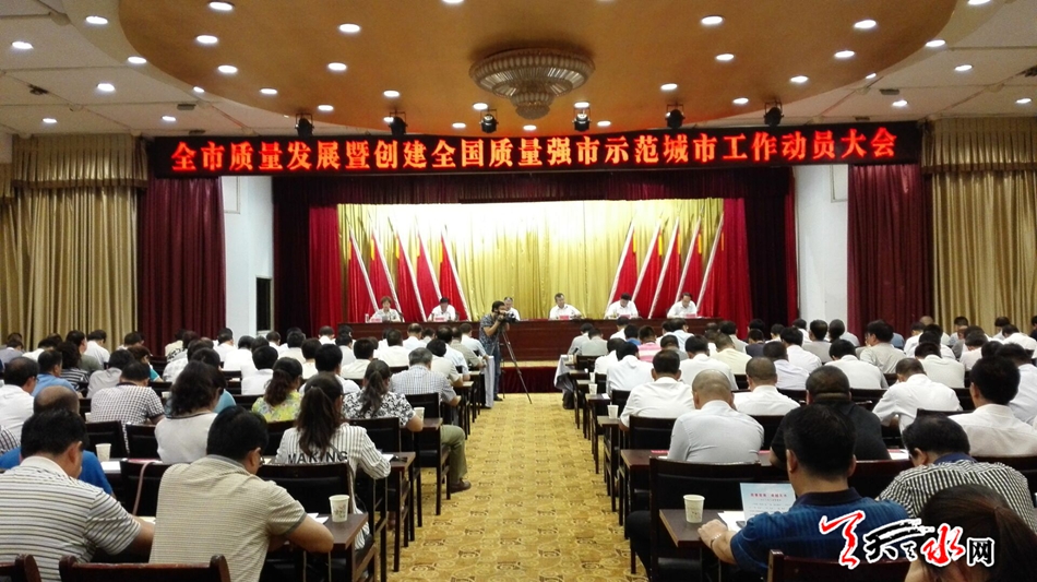 天天天水网讯【记者胡丽霞 李旺旺】7月26日,全市质量发展暨创建全国质量强市示范城市动员大会在市迎宾馆召开,会议总结了我市实施质量强市战略取得的初步成效,表彰了2015年度在全市质量建设中作出突出成绩的先进单位和企业。天水市委书记王锐在会上强调,开展全国质量强市示范城市创建活动,是市委、市政府立足转变经济发展方式、推进质量强市战略做出的一项重要决策部署,也是推进我市质量工作的一个重要抓手。全市各级各部门要提高思想认识,进一步增强创建工作的责任感和紧迫感,找准工作定位,切实履行职责,全力以赴做好创建各项工作。