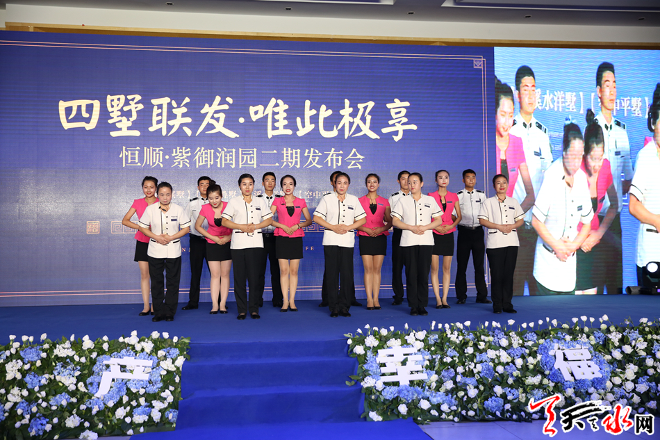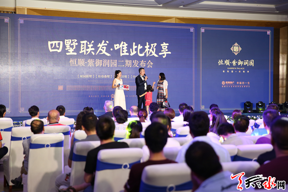 天天天水网讯 7月29日晚上,恒顺·紫御润园二期产品携豪车大礼在怡欣阁酒店宴会厅盛大发布。豪车美女秀、网红直播秀、奢华别墅秀嗨翻发布会现场,震撼的节目表演、神秘的美女机器人,精彩纷呈,丰富了天水人们盛夏夜的文化生活,发布活动吸引了上千人现场参与以及5万多人通过人通过直播观看此次发布会。