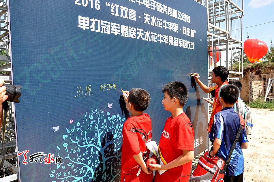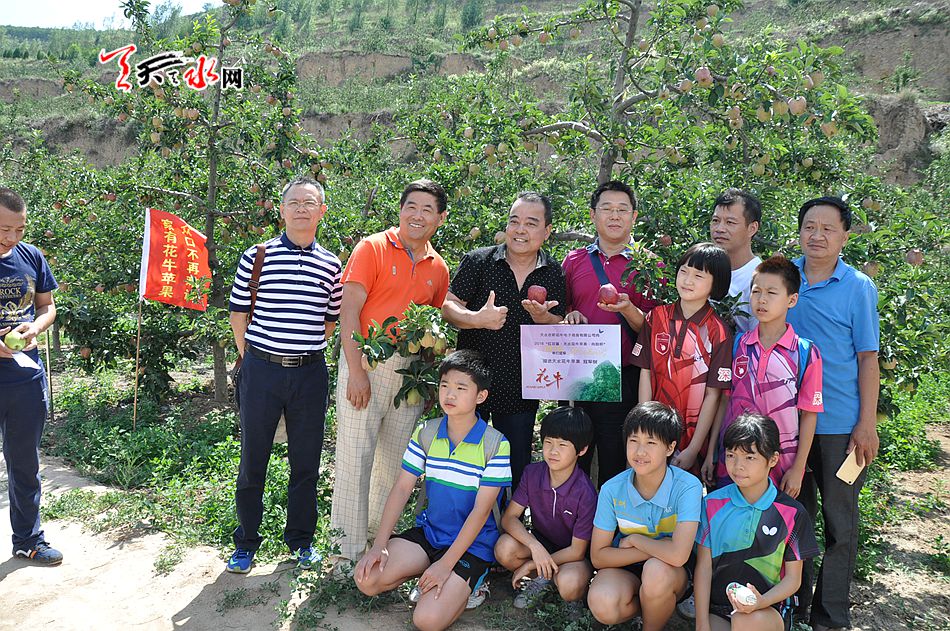 7月31日,麦积区三阳川辽阔的原野一片翠绿,满山葱茏的苹果树枝头缀满红灿灿的苹果,在夏日的骄阳里拔节疯长。这片孕育着丰收果实的苹果种植基地,迎来了一群来头不小的乒坛小将,他们是刚从第37届 “向阳杯”全国少儿乒乓球比赛中斩获冠军的未来之星,这些小神童将与天水的花苹果来一次特殊的仪式——认领以他们名字命名的苹果树,以铭记这次意义非凡的比赛。