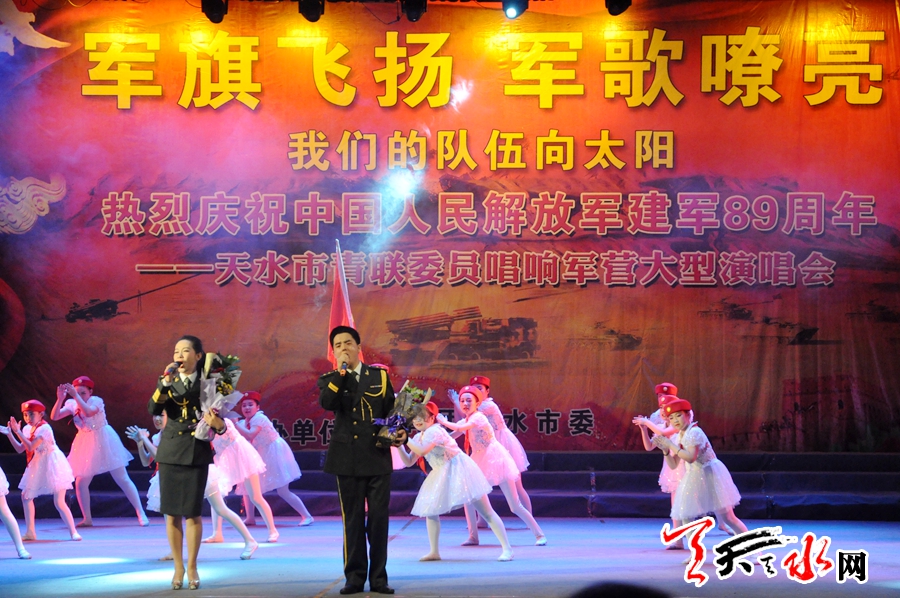 军民欢聚一堂,共话鱼水情深。 8月1日晚,驻市某部队礼堂里歌声嘹亮,掌声如潮,一曲《节日欢歌》歌舞拉开了庆祝中国人民解放军建军89周年演唱会的序幕。由共青团天水市委、天水市青年联合会主办的“军旗飞扬,军歌嘹亮——我们的队伍向太阳”唱响军营大型演唱会隆重举行。国家二级演员张文静、甘肃戏曲"红梅奖"获得者袁丫丫等艺术家联袂演出了《复兴之歌》、《花木兰替父从军》等16个精彩的文艺节目,表达了对钢铁红军师的崇敬之情,向官兵致以节日的问候。市委常委、副市长李晓东,市政协副主席刘永年观看演出。天天天水网记者 冯丽娟 实习生 吴丽娜 摄