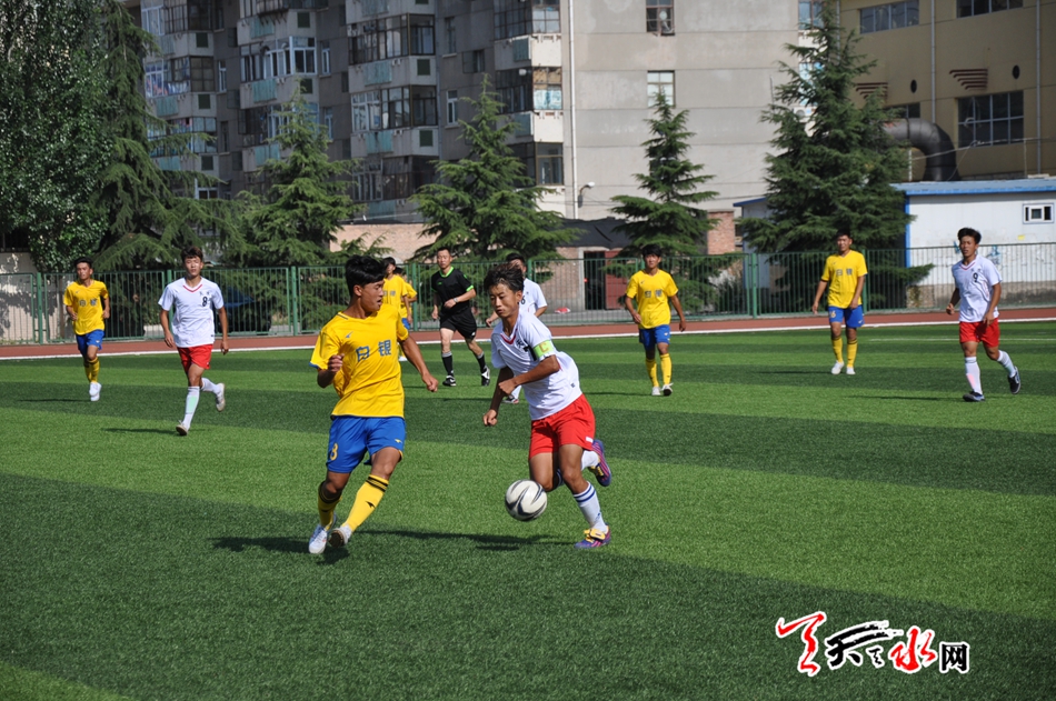 天天天水网讯【记者 刘晓亚】8月2日,甘肃省第三届中学生运动会男子组足球在天水师院开赛,首场以4:0的大比分踢开了角逐的大门。