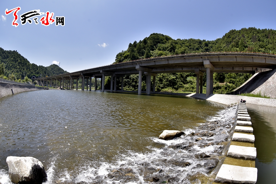党川人工湖上空,宝天高速路彩虹般横跨