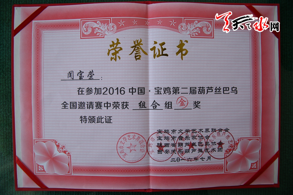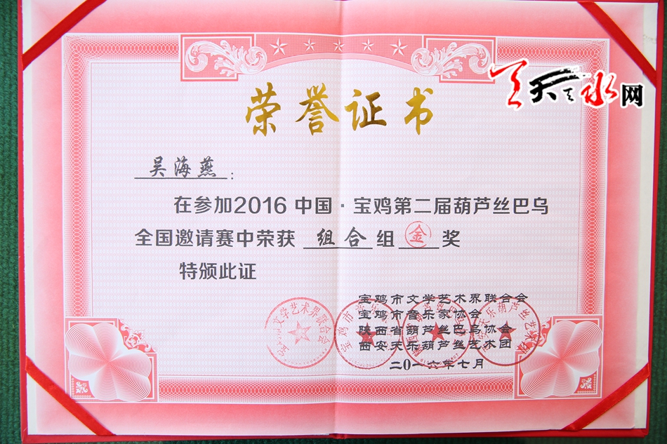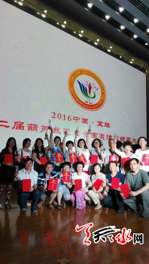 天天天水网迅【记者 杨旭】2016中国·宝鸡第二届葫芦丝·巴乌全国邀请赛于8月1日在陕西省宝鸡市圆满结束,天水市的闻燕丝雨葫芦丝工作室参赛队在此次比赛中,以斩获2项金奖的喜人成绩满载而归。