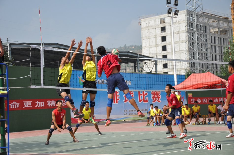 按照中运会比赛赛程安排,8月8日排球小组赛是天水队对阵张掖队,比赛一开始双方势均力敌,拼抢激烈,前两局张掖队一路领先,张掖队2:0领先天水队,第三局天水队调整战术布放,加强网前阻拦和进攻,将比分拉到1:2,接下来的两局比赛中,天水队一鼓作气,强攻硬守,强化一传的作用,减少自身失误,连下两城,最终以3:2战胜张掖队。
