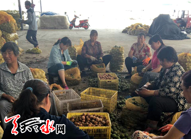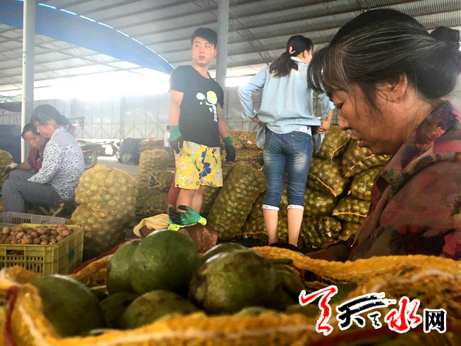 在麦积区甘泉镇政府,办公室工作人员周亮亮接受记者采访时说,麦积区甘泉镇廖家庄村核桃贸易市场形成于上世纪九十年代,随着种植、加工、销售规模的逐年扩大,形成了雄踞天水,横跨陇东南,辐射四川、陕西、新疆的西北地区最大的核桃集散市场。如今的“甘泉核桃”品牌已被省内外客商所知晓,产品销往河南、陕西、江苏等10多个省。