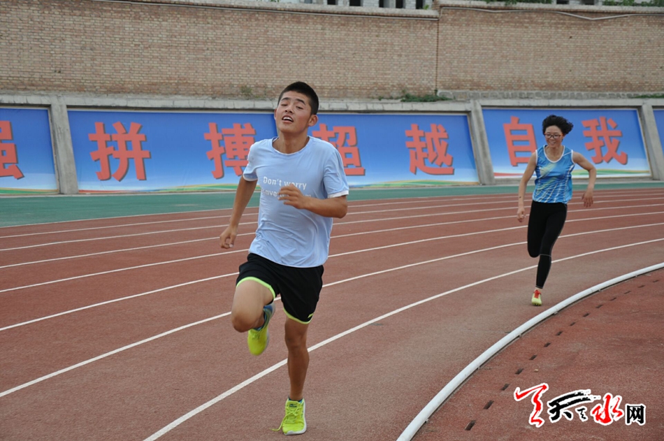 天天天水网讯【记者 刘晓亚】8月12日,来自张掖、武威、金昌等地代表队的田径、健美操运动员在比赛场馆上进行赛前训练,为省三届中运会最后开赛的田径和健美操比赛积极备战。