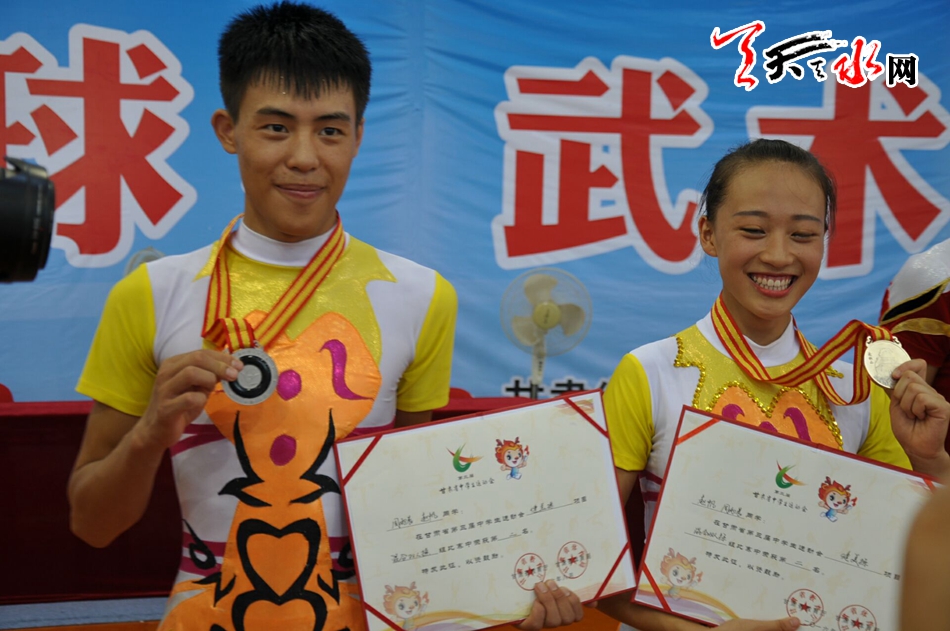 在同日下午举行的健美操决赛中,天水代表队的牟晔以19.64的总分获得男子单人操银牌。该项目金、铜牌分别归属白银和嘉峪关。由天水选手周雨晨和赵帆组成的组合,在混合双人操决赛中以20.13的总分获得银牌。该项目金牌和铜牌别被白银和兰州夺走。