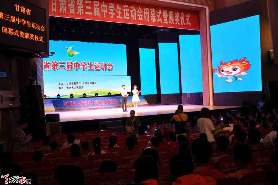 天天天水网讯(记者 刘晓亚)8月16日,甘肃省第三届中学生运动会闭幕式在秦州剧院隆重举行,甘肃省第三届中学生运动会在天水圆满完成各项赛事后顺利闭幕。甘肃省中学生运动会团体总成绩榜单出炉,兰州代表团获第一名,总分922分;天水代表团获第二名,总分510分;定西代表团获第三名,总分499分。