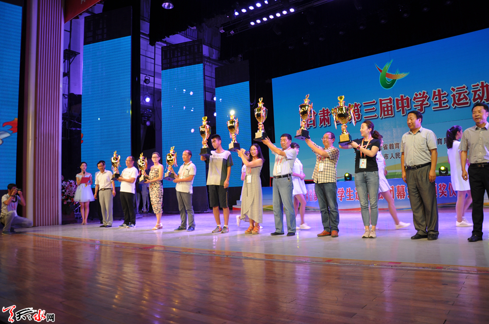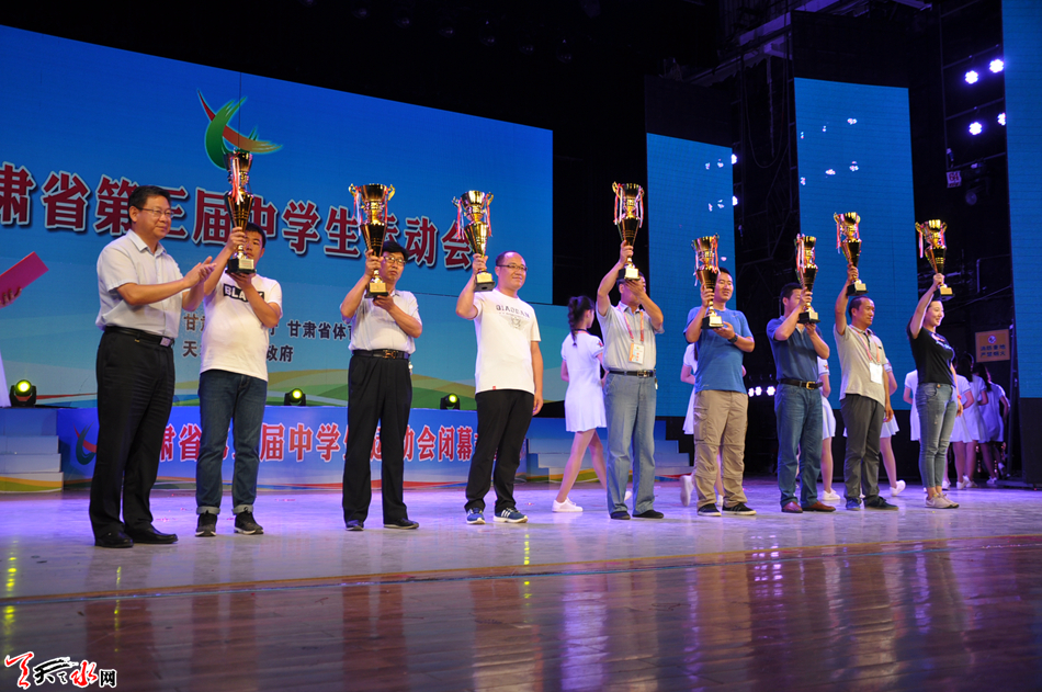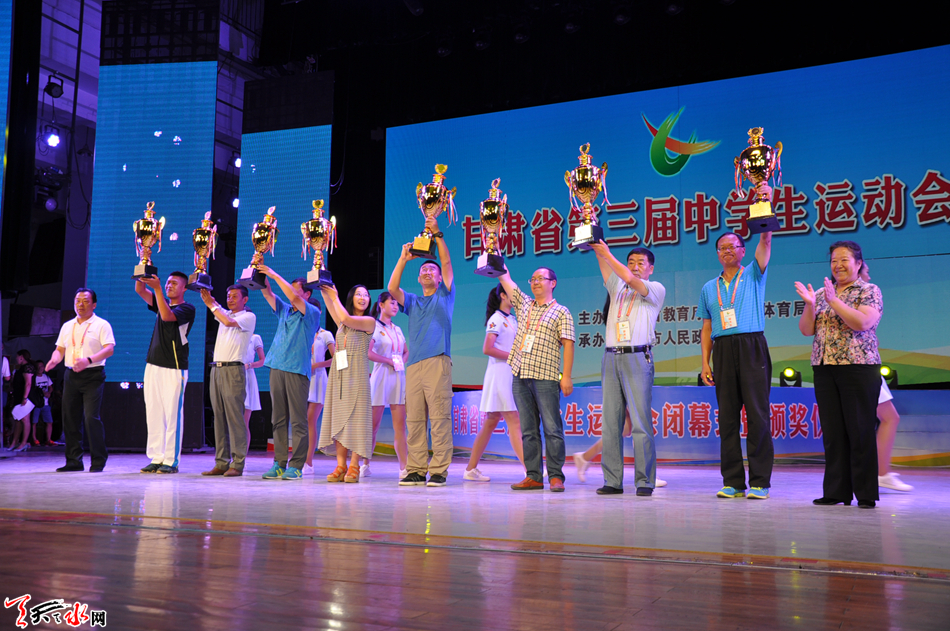 大会决定授予兰州、天水、定西、白银、平凉、陇南“局长杯”;授予兰州、嘉峪关、金昌、白银、天水、酒泉、张掖、武威、定西、陇南、平凉、庆阳、临夏、甘南、省厅直属代表团优秀组织奖;授予金昌、嘉峪关、定西、庆阳、武威、张掖、临夏、省厅直属代表团体育道德风尚奖;授予天水市政府突出贡献奖;授予甘肃工职学院、甘肃林学院、天水市教育局纪念奖。