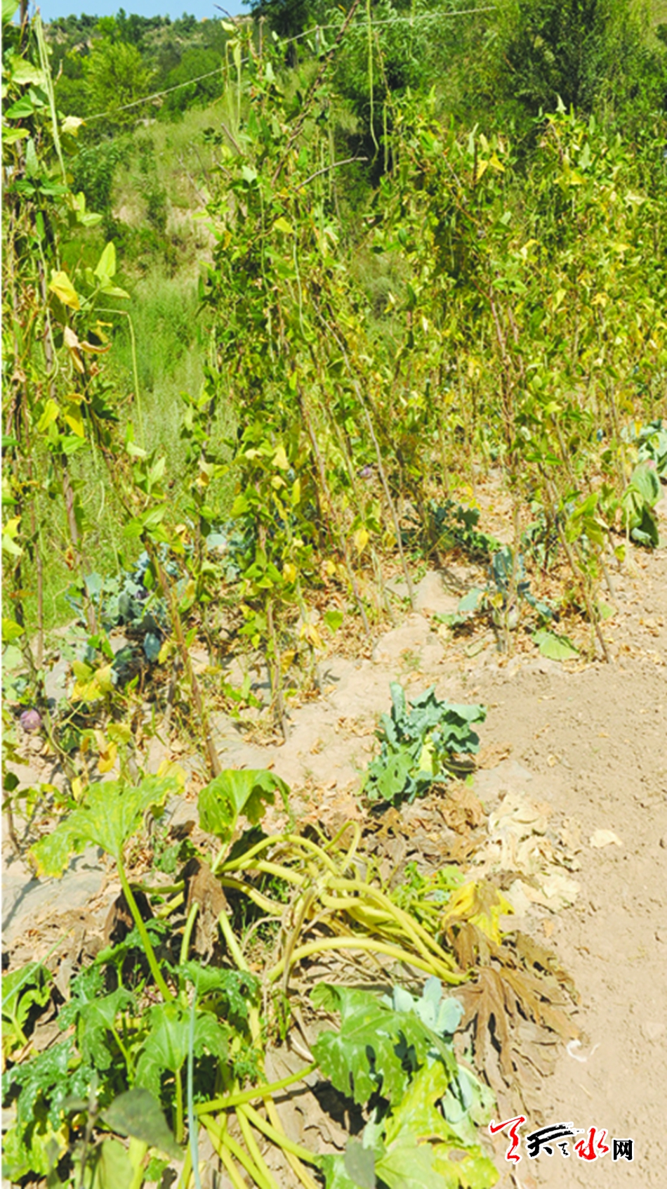 高温干旱让城市变成了火炉,让山川变得枯黄干燥。记者看到,渭河以北向阳的山地农田里的部分玉米几近枯死,没枯黄的部分因缺少水分而失去了生机;菜园里,菜瓜、茄子、辣椒等农作物的叶子也被晒得皱皱巴巴的。