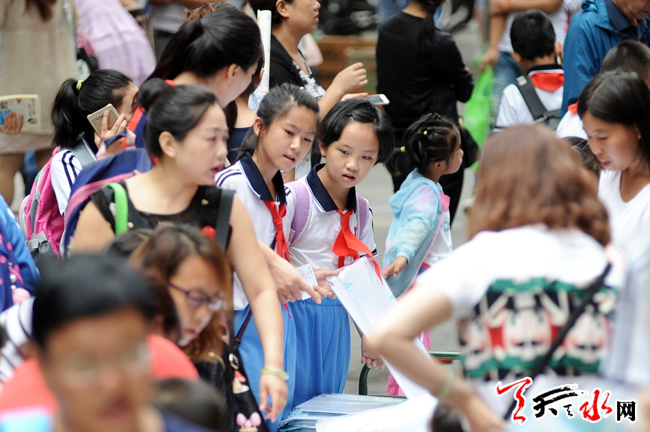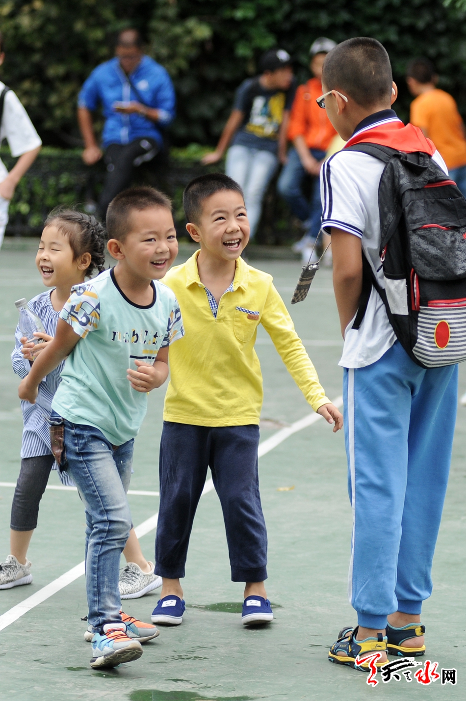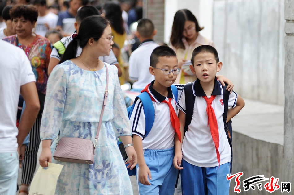 8月25日,孩子们让静寂了一个暑假的校园又沸腾起来。当日,天水市各中小学校开学的第一天,告别暑假的学生们,纷纷收拾心情重返校园,迎接新学期的学习生活。 (天水日报记者周文涛 摄)