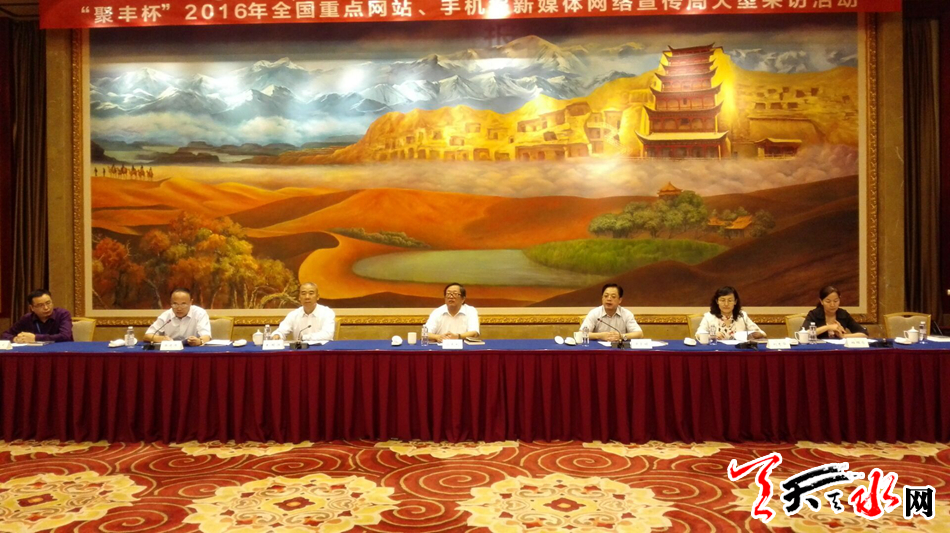 天天天水网兰州讯(记者姚宇)为落实好国家“一带一路”重大战略,喜迎将于9月20日举办的首届丝绸之路(敦煌)国际文化博览会,提前探访文博会的筹备情况,8月29日上午,由甘肃省委宣传部和省委网信办指导,甘肃日报社主办、每日甘肃网承办的“走一带一路 探文博盛会——‘聚丰杯’2016年全国重点网站、手机报新媒体网络宣传周”大型采访活动在兰州启动。