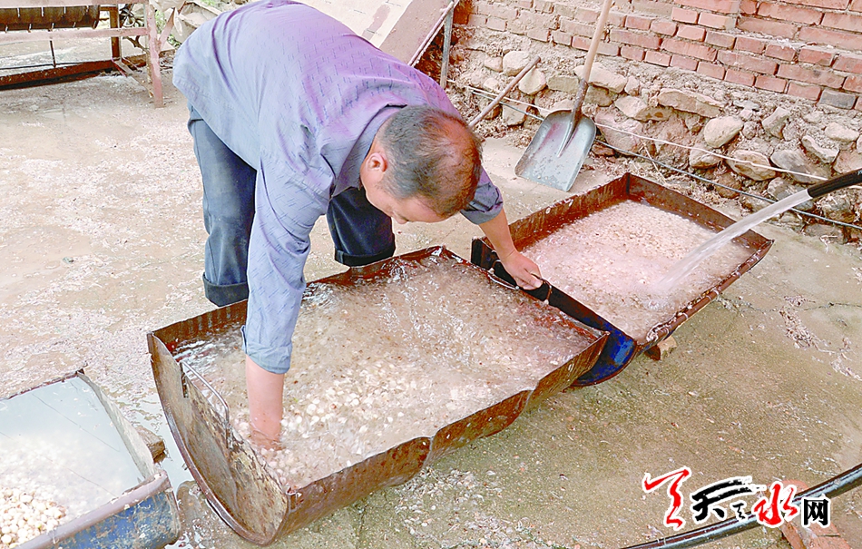 8月23日,记者在清水县白沙乡的田间地头看到,农户们正忙着挖半夏,半夏经过挑选、淘洗、晾晒等工序,像一颗颗珍珠一样雪白。