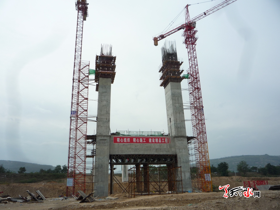 天天天水网5日17时讯【记者蔚军平】9月5日上午,记者来到成纪大道罗家沟大桥施工现场,只见一座高31米的桥梁主塔耸立在藉河河床上,施工人员正在塔顶施工作业。