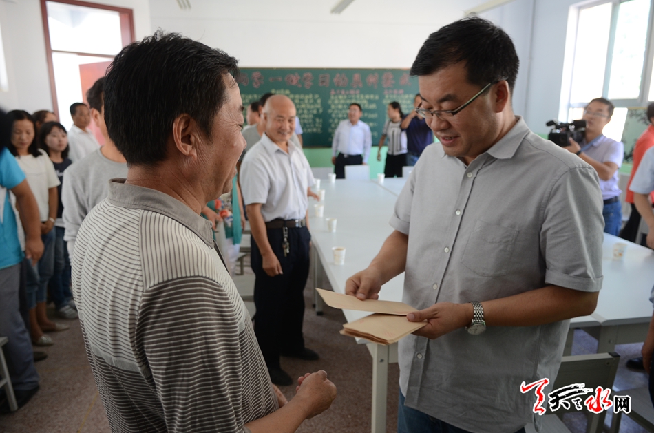 天天天水网7日18时讯 【记者 杨璟】9月7日,在第32个教师节即将来临之际,市委常委、宣传部长王正茂深入麦积区三岔镇、东岔镇部分学校,亲切看望慰问一线教师,并通过他们向全市广大教师和教育工作者致以节日的问候。