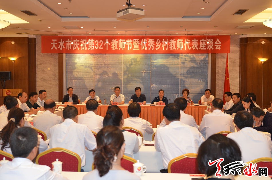 天天天水网讯(记者胡丽霞)9月8日,我市召开庆祝第32个教师节暨优秀乡村教师代表座谈会,表彰奖励在乡村任教30年、20年以上的优秀乡村教师代表。天水市委常委、宣传部长王正茂,天水市人大常委会副主任萧菡、市政协副主席白晓玲出席座谈会。