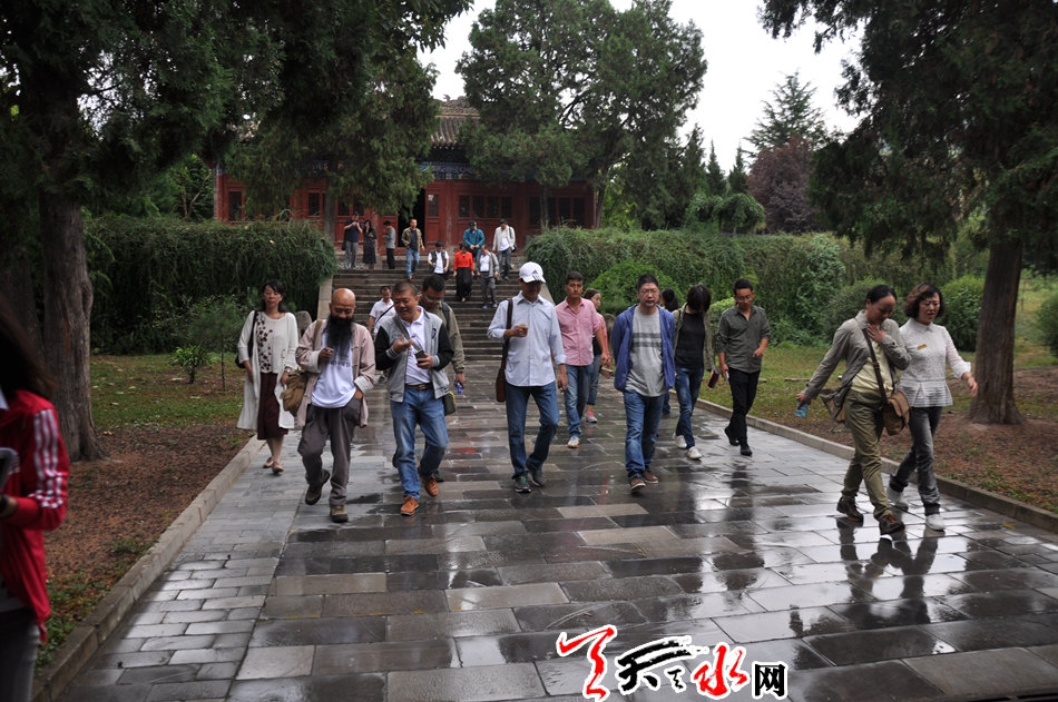 当天上午,伴随着淅淅沥沥的小雨,大家首先前往李广墓,听飞将军李广征战沙场的英勇事迹,为他终不得志的命运所叹息。第二站大家前往了位于天水市城南的南郭寺。雨后的南郭寺浮尘被洗涤一空,空气里弥漫着泥土的清香,众人站在一千多年前曾寓居天水的著名诗人杜甫的塑像前,听导游讲述南郭寺的历史故事。