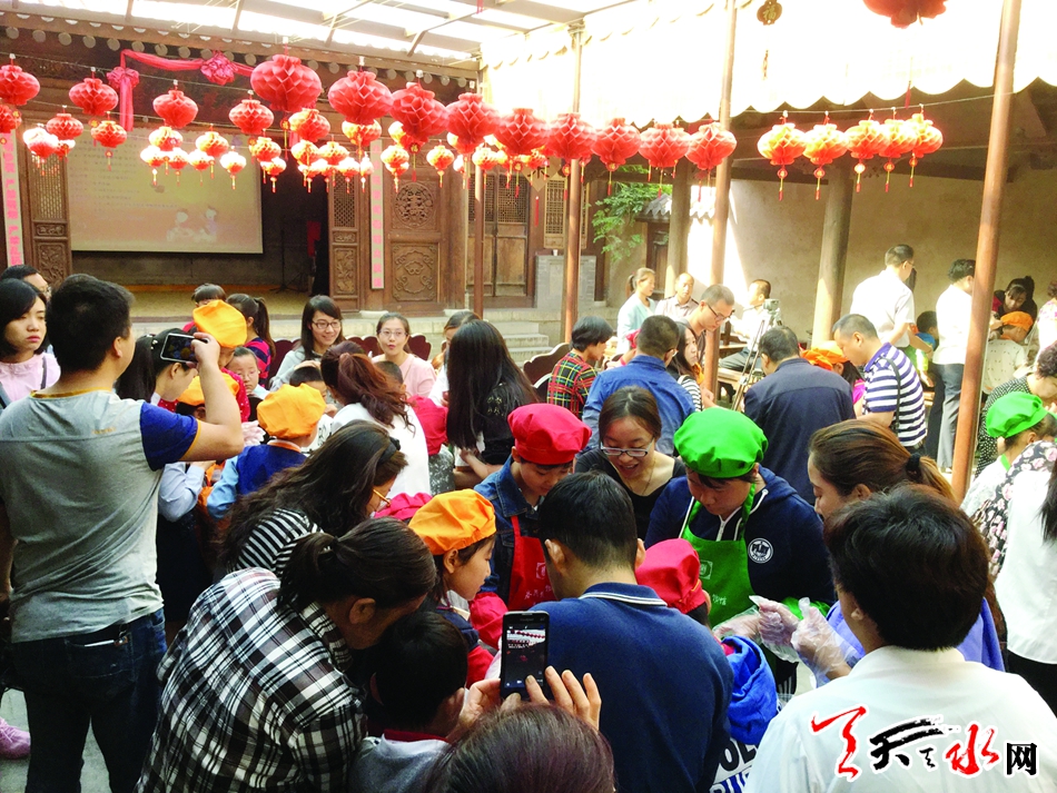“床前明月光,疑是地上霜。举头望明月,低头思故乡。”“……人有悲欢离合,月有阴晴圆缺,此事古难全。但愿人长久,千里共婵娟。”在小朋友抑扬顿挫的朗读声中,一首首描写中秋的古诗词飘扬在这座古色古香的南宅子上空。戏楼院内更是热闹非凡,小朋友和家长正在认真制作月饼,此时的天水民俗博物馆犹如诗人笔下的美丽画卷,充满着诗情画意。