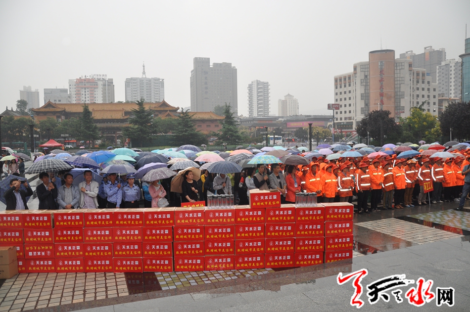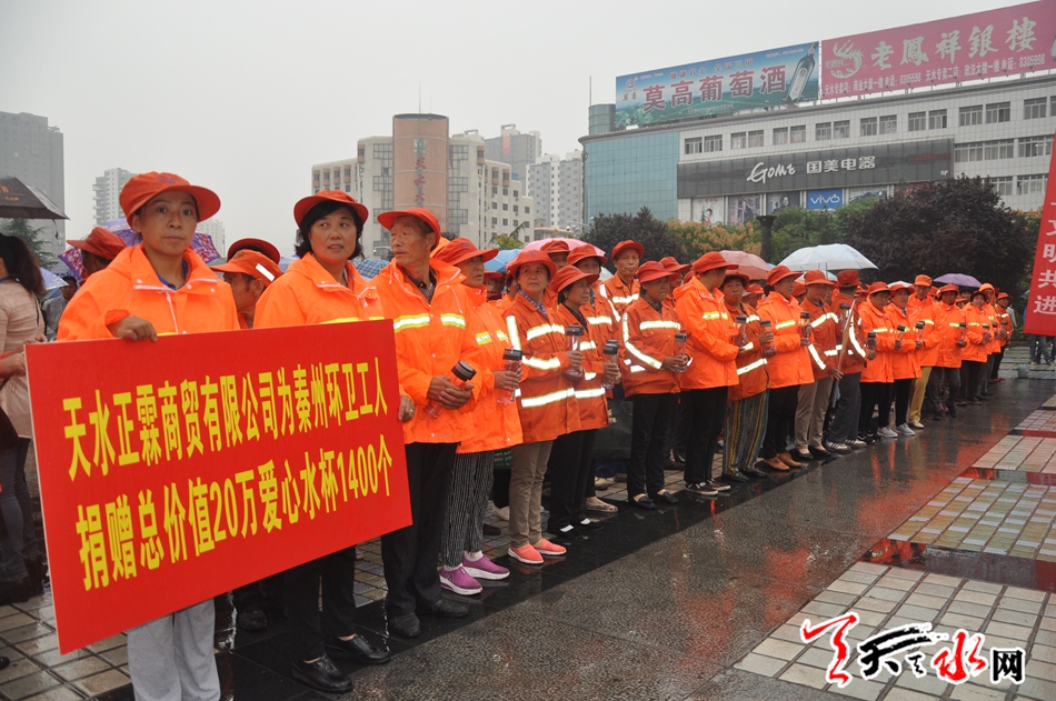 (秦州区举行关爱环卫工人捐赠爱心水杯活动)