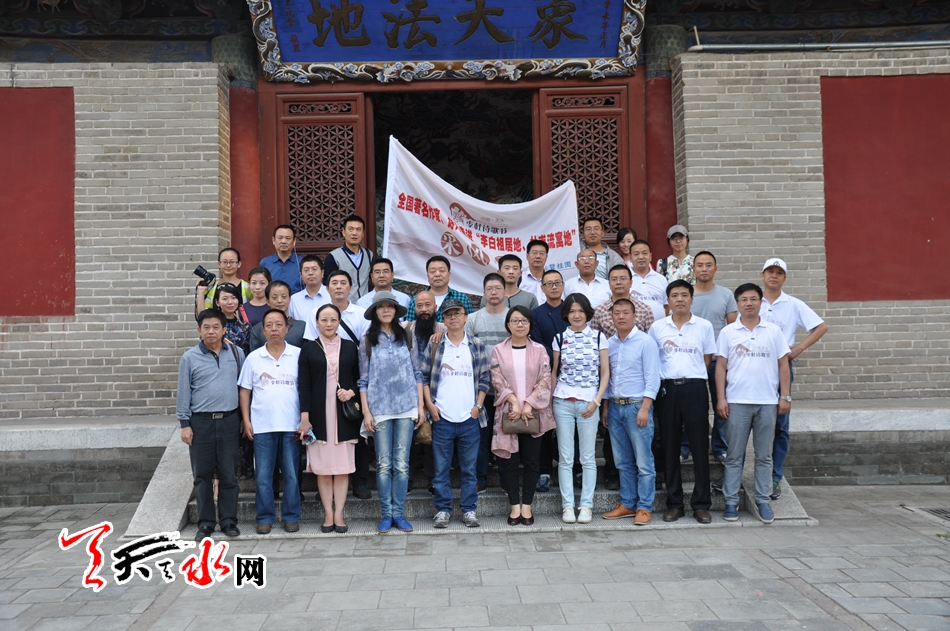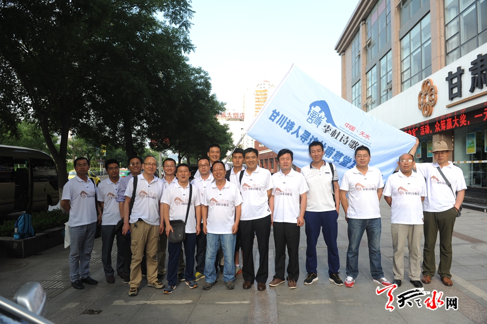 ▲参加“全国著名诗人、作家走进‘李白祖居地、杜甫流寓地’——诗意天水”采风活动的17位全国著名诗人及作家与天水本土的一些作家诗人合影留念。
