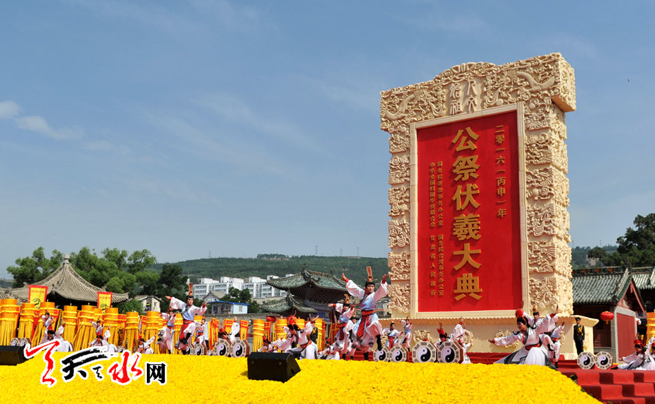 天水是伏羲的诞生地和伏羲文化的发祥地,公祭伏羲由来已久,相沿成习。公祭伏羲大典暨文化旅游节自1998年开始举办以来,已成功举办了27届,规模和影响逐年扩大。2005年,首次由省政府主持举办了公祭伏羲大典。2006年,伏羲文化旅游节被国际节庆协会评为“中国最具发展潜力十大节庆”活动之一,公祭伏羲大典被列入国家首批非物质文化遗产保护名录。2008年,伏羲文化旅游节又被中华民族文化促进会、节庆中华协作体理事会联合授予“最佳文化传承奖”。之后,在探索海峡两岸公祭活动上实现了新突破,实现了海峡两岸共祭。